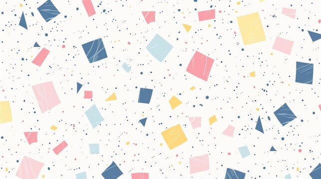 A colorful pattern of squares and triangles on a white background