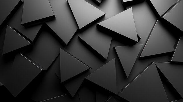 Abstract black background with orange glowing triangles, 3d render illustration, dark carbon design, triangle pattern, metallic graphics