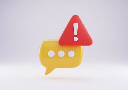 Alert notification message icon with exclamation mark in warning triangle symbolizing communication error or important alert