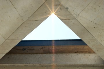 Triangle glass roof in a mall. Glass triangle glass roof and clear sky