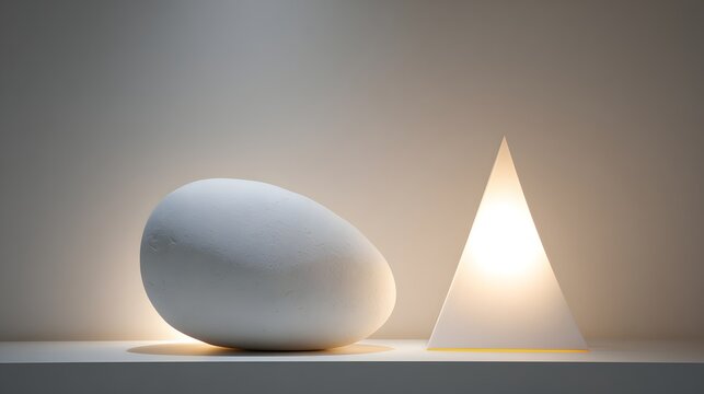 Minimalist beige sculpture featuring ribbed triangular slab resting on coiled clay base