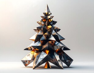 Geometric pattern of metallic bronze facets with light, creating a complex and dimensional texture, representing sophistication and modern design