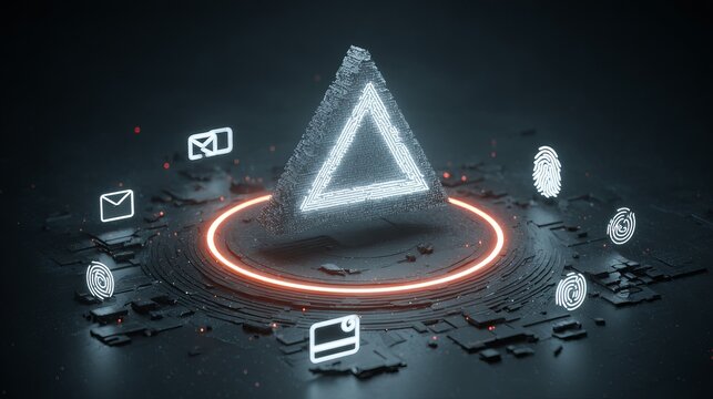 Futuristic triangular light display with neon energy