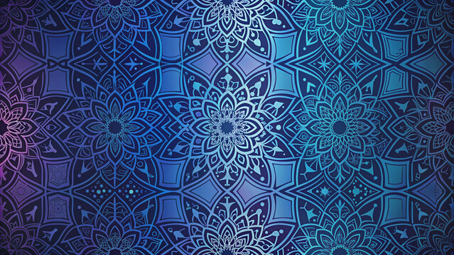 Dark blue ombre background featuring intricate geometric shapes in gradient hues of blue and purple, ideal for modern technology and design wallpapers.