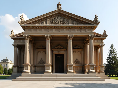 Ancient Greek Classical Temple with Sturdy Columns and Triangular Pediment on White Background