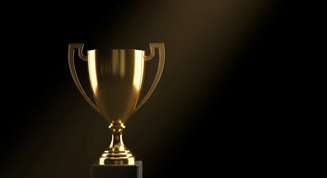 Golden trophy cup on a dark background symbolizing achievement and success with spotlight effect highlighting its shine and grandeur over a