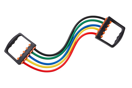 universal expander, for fitness workouts, colored elastics for stretching, on a white background