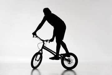 bmx biker performing a jump isolated over white