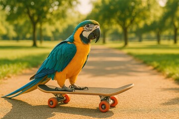 Chicken riding a skateboard wearing a helmet isolated PNG with Transparent Background