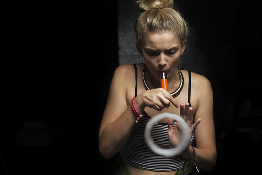 Bmx rider performing tricks with colorful smoke effect