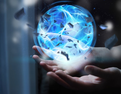 Superhero creating a power ball with his hand