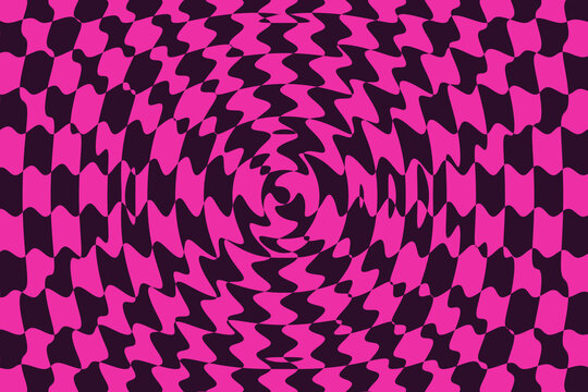 3D Optical Illusion Grid. High-resolution warped checkerboard pattern with a bold and dynamic optical illusion effect. This trippy background blends Y2K aesthetics with op art vibes.