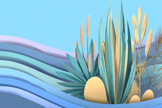 3D stylized plants, pastel waves