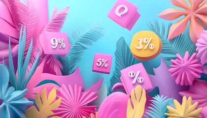 Vibrant Tropical Floral Arrangement with Abstract Elements.