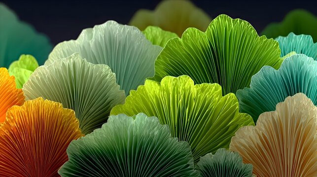 2D floral design with abstract layered elements in a continuous repeat pattern