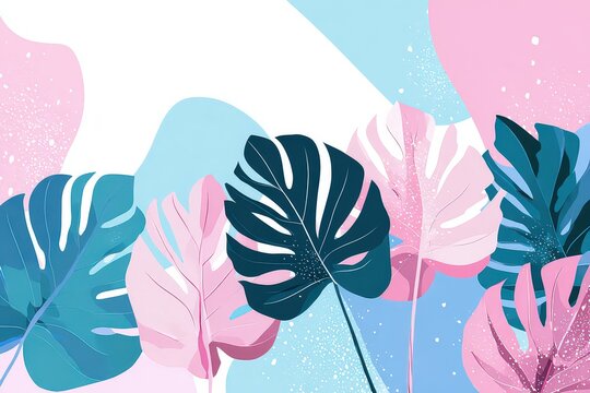 Abstract Tropical Foliage Design With Blue And Pink Colors And White Background