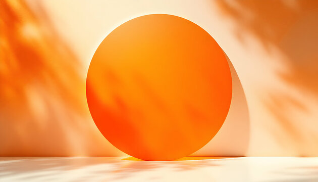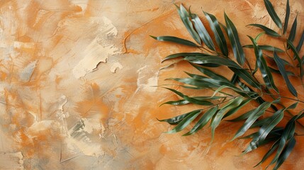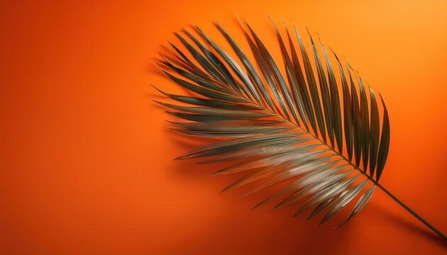 Minimalist Green Palm Leaf Shadow on Warm Orange Background for Modern Design