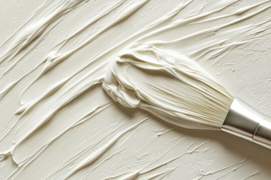 Applying decorative putty. White abstract texture of surface covered with putty. textured background of filler paste applied with putty knife in irregular dashes and strokes. Rough surface plaster