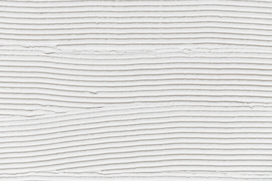 Gray wall glue plaster comb surface prepared for tiling. Tile adhesive notched trowel patterns. Texture background of tile mortar paste. Grey cement wall with a linear pattern. Macro shot.