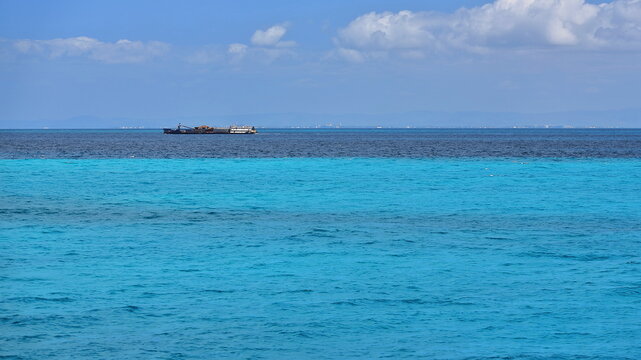 A dredging ship in action at Palm Jumeirah, Dubai, UAE