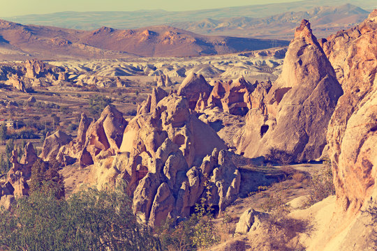 Vintage photo of Cappadocia Rock formations in Goreme National Park, Turkey