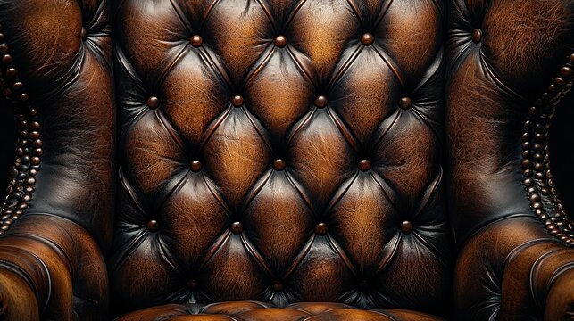 Detail of tufted brown leather chair back