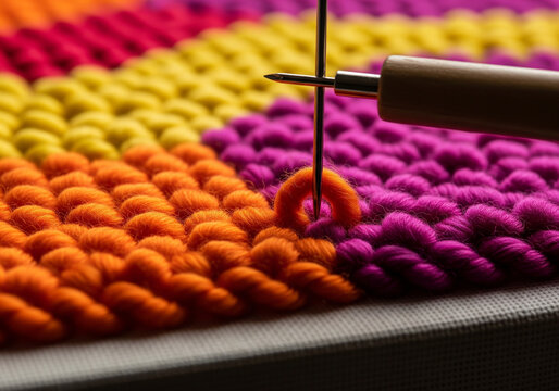Textile pastel background with abstract weaving of threads. Fabric tufted multi-colored background