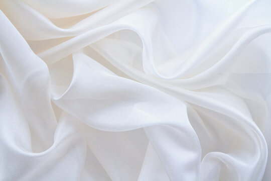 diaphanous white fabric draped with folds, textile wave background