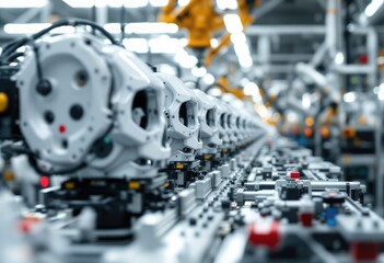Automated assembly line with white engine components