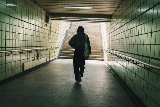 Woman Walking Through Subway Passage