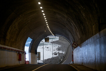 Winding road leading to mountain tunnel