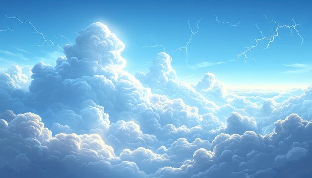A dramatic blue sky filled with thunder effects above tumultuous clouds