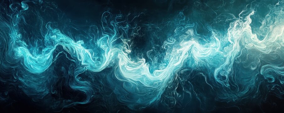 Abstract Water Wave in Shades of Blue with Dynamic Splash and Ripple Effects Creating a Fluid Motion Against a Dark Background