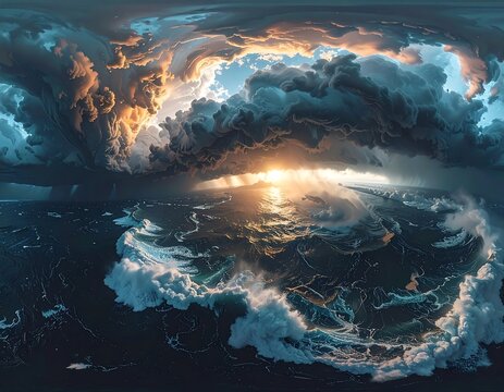 swirling vortex of dark clouds with bright center, creating dramatic and intense . image evokes sense of power and nature fury, reminiscent of cyclone or hurricane