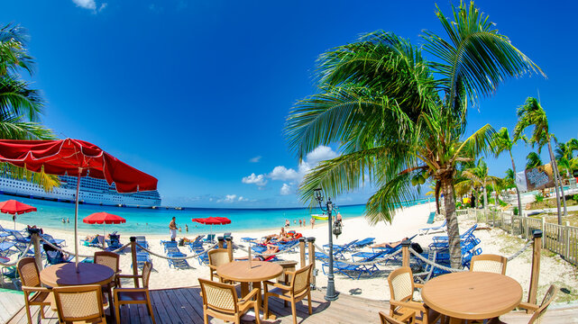 Aerial view of the beach at the cruise center of Grand Turk in the Caribbean..