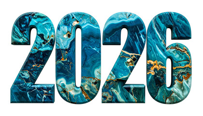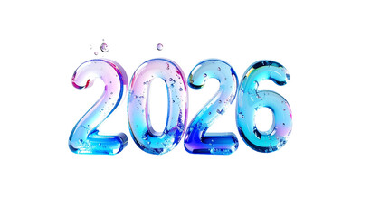 2026 rendered in iridescent, bubble-like digits with sparkling droplets