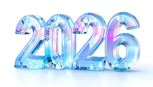 Sparkling, transparent "2026" digits with a subtle light gradient
