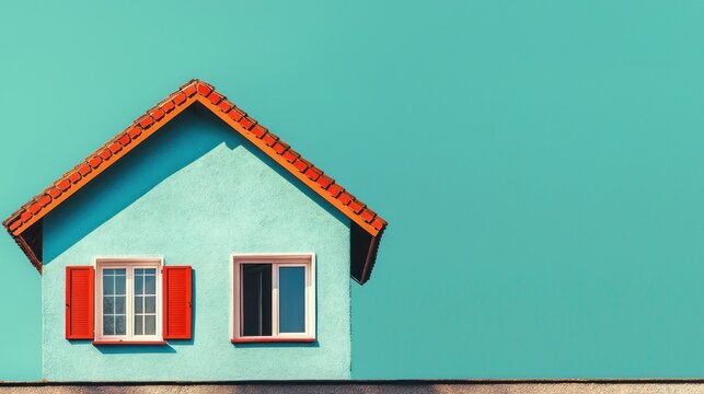 Pastel turquoise blue colorful hurricane window shutters closeup architecture open exterior of house in Florida beach home during sunny day, painted