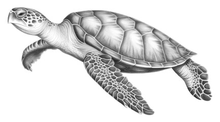 realistic illustration of sea turtle showcases its detailed shell and textured skin, capturing essence of marine life. turtle serene expression adds sense of calm to image