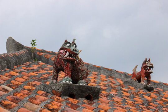 沖縄の伝統文化シーサーが見守る南国の風景