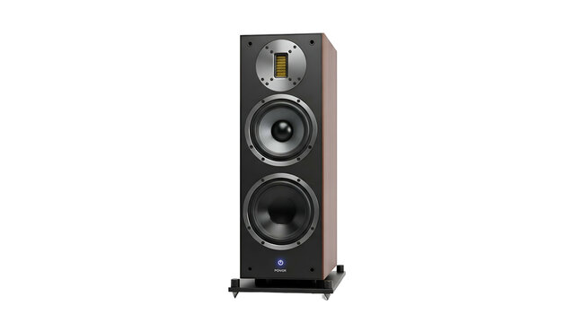Tall speaker with ribbon tweeter and dual woofers on black base