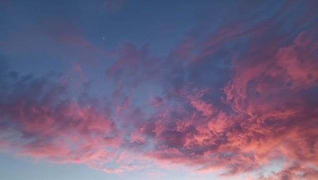 Pastel sunset clouds radiating warm horizon glow with wispy streaks and twilight hues