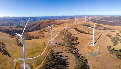 Aerial panorama of Balalie North brown Hill wind farm in South Australia.