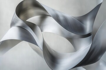 abstract flowing ribbon sculpture, dynamic metallic curves, elegant motion, dimensional depth