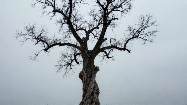 Twisted, textured tree trunk, photographed in a garden in Leighton Buzzard, Buckinghamshire UK.