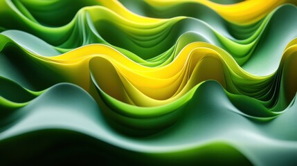 Luminous flowing shapes. Bright gradients in electric yellow and forest green. Twisting curves merging into abstract designs.