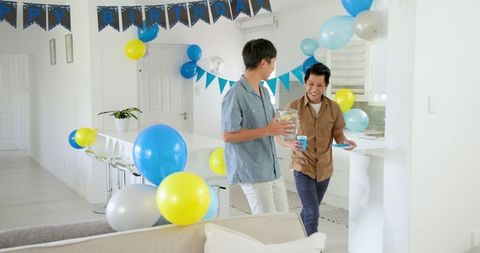 Two Men Sitting at Cafe, Asian Mix Race Friends Guys