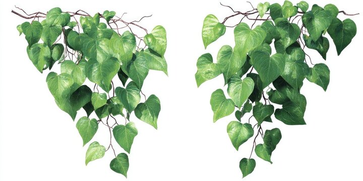 Two Clusters of Fresh Red Grapes with Vibrant Green Leaves Isolated on a White Background Ready to be Enjoyed
