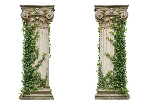Six classical ionic columns arranged in two rows isolated on transparent background