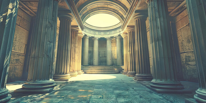 The Pillars of Progress: A grand archway with two massive columns, supporting the weight of a sculpted frieze.